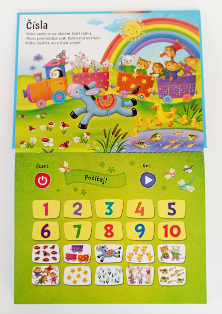 Táto skvelá dotyková kniha si s istotou získa srdce Vášho dieťaťa. Stláčaním farebných obrázkov sa deti učia čísla, tvary, farby a zároveň sa stretávajú s množstvom zvieratiek. Zábavná hra na každej dvojstrane preverí čerstvo nadobudnuté vedomosti.
