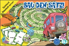 rezeptiven und produktiven Kompetenzen bei Sätzen mit Zeitangaben. Die Spielbox enhält: einem farbigen Spielfeld; einem Stoß von 66 Karten; einem Zahlenwürfel; einem Würfel mit Personalpronomen, einem Würfel mit Satzarten; eine Spielanleitungen.