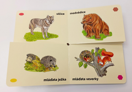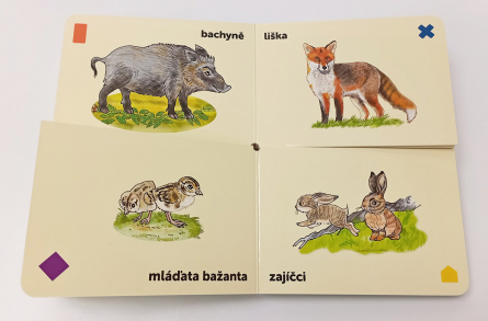 Barevné leporelo pro děti s poučným obsahem. Děti se zabaví hledáním dvojic obrázků, které k sobě patří. Jednotlivé stránky jsou rozdělené na poloviny a tím se hledání zvířátek stává zábavnějším.