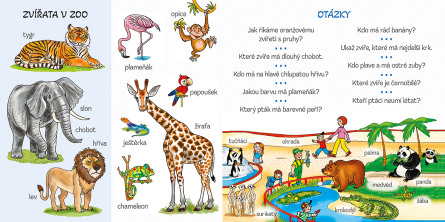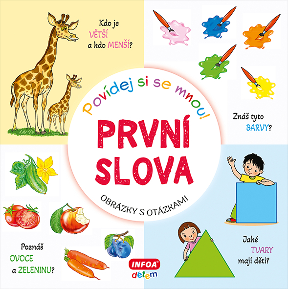 Leporelo s krásnými barevnými ilustracemi pomáhá dětem s prvními slůvky. Obrázky jsou doplněny otázkami, na které děti odpovídají a tím si upevňují svoji první slovní zásobu.