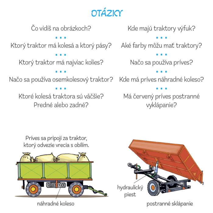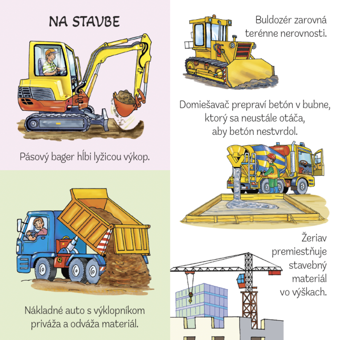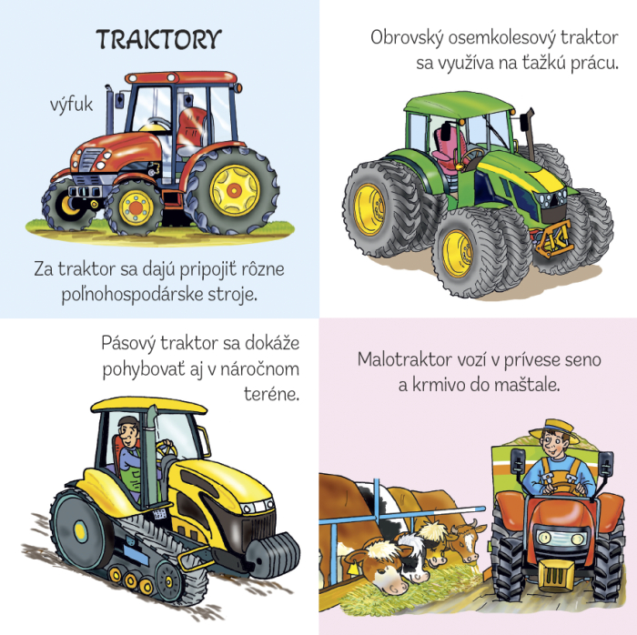 Leporelo s krásnymi farebnými ilustráciami zavedie deti do sveta áut, vlakov, lietadiel a ďalších zaujímavých strojov. Obrázky sú doplnené otázkami, na ktoré deti odpovedajú, a tým si upevňujú vedomosti, ktoré sa o technike dozvedeli.
