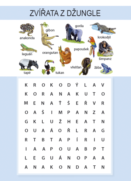 logického myšlení, soustředění a představivosti. S barevnými obrázky se luštění zjednoduší a hledaná slova děti jistě najdou rychleji a snáz. Slova jsou umístěna v 8 směrech – vodorovně, svisle, zleva doprava, zprava doleva a šikmo všemi čtyřmi směry. Správné řešení najdete v zadní části sešitu.