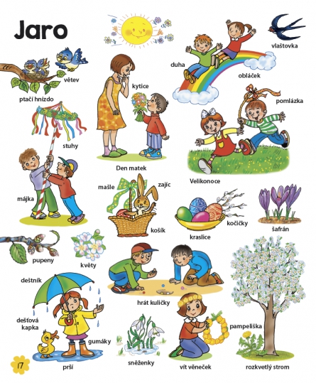 Kniha plná poutavých barevných obrázku, které zachycují slova z každodenního života. Slova jsou uspořádána do témat, ve kterých rodiče přirozeným způsobem seznámí své děti s novými slovy.